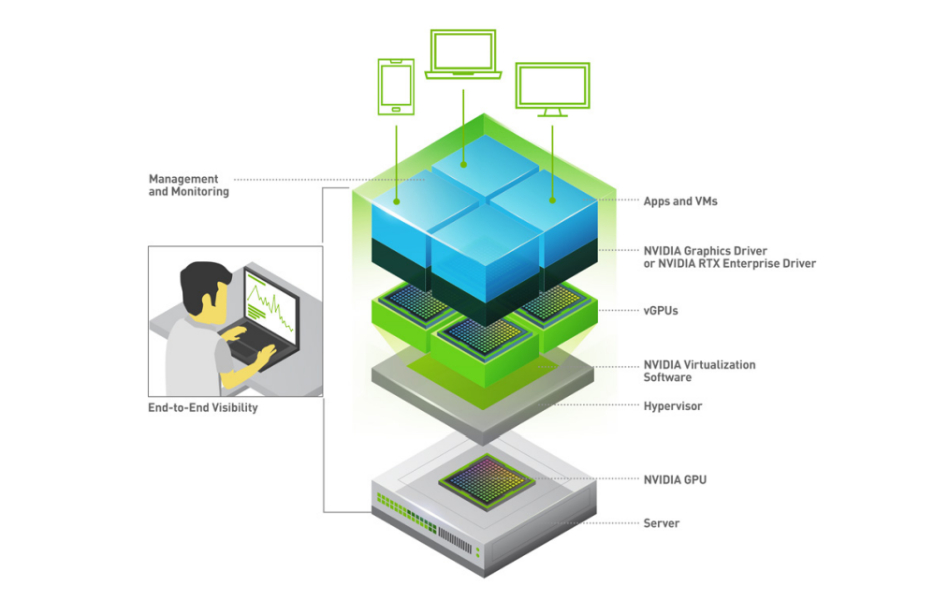 Схема работы виртуального GPU NVIDIA. Изображение: www.nvidia.com